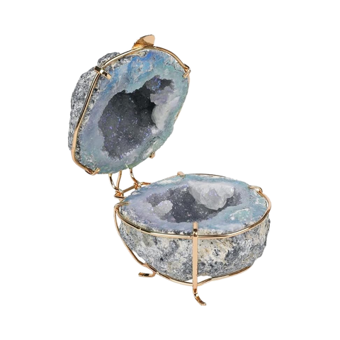 Độc Đáo Pha Lê Geode Hộp Đồ Trang Sức Vòng Khắc Mã não Trường Hợp Khắc Tình Yêu Thiết Kế Cho Nhẫn Bông Tai Chủ Engagement Bức Tượng Phong Cách